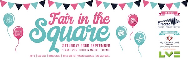 On Saturday 23rd September 10am - 2pm we have an exciting event happening in Hitchin - Fair in the Square! There will a whole host of stalls and activities to get involved with.