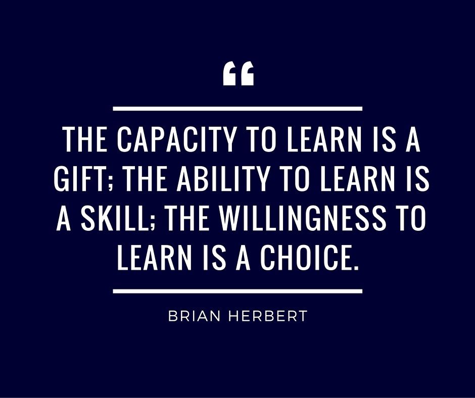 Brian Herbert once said, ‘The capacity to learn is a gift; the ability to learn is a skill; the willingness to learn is a choice.’